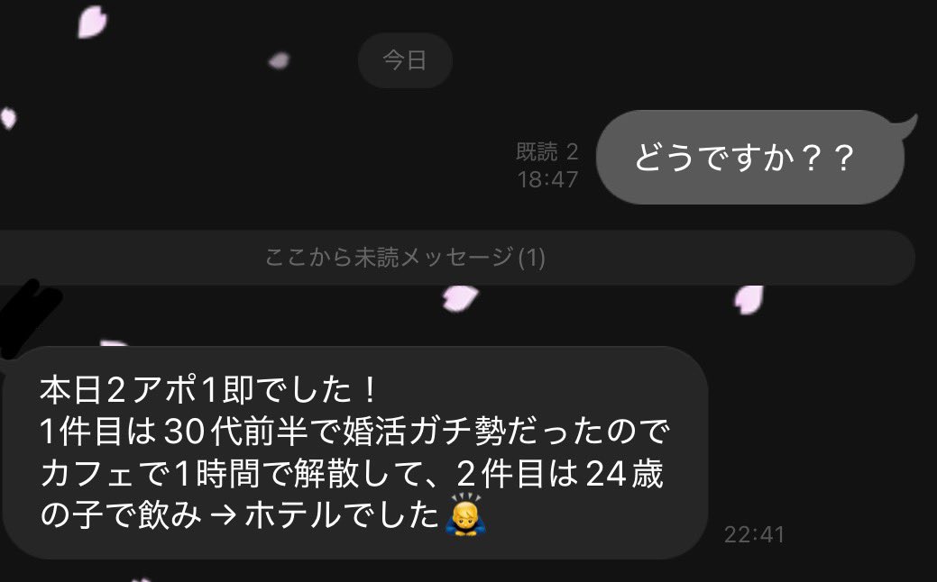 激務過ぎるゆえ、マッチングアプリのやりとりは基本固定文(テンプレ)でLINE移行し、アポを決める。